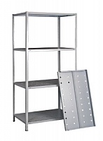Металлические, перфорированные полки стеллажа отличаются высокой надёжностью. Максимум распределённой нагрузки на одну полку – до 120 кг, на весь стеллаж – до 500 кг.